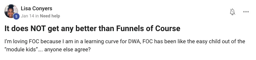 After over a year in the industry & using 2 other funnel builders, FOC has me saying 'I'm never going back!' It truly has it all and is user-friendly for even the total beginners
